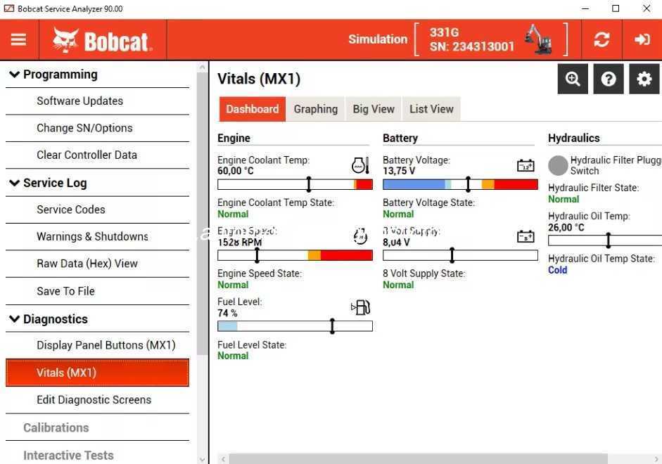 Diagnostische hulpmiddelen Bobcatom u te helpen vast te stellen of er een probleem is met onze apparatuur en deze tijdig op te lossen met het diagnostische hulpmiddel om potentieel gevaar te voorkomen.Deze software stelt u in staat om uzelf vertrouwd te maken met de verschillende technische informatie en functies van dit programma, waarmee u uw apparatuur correct kunt diagnosticeren en vroegtijdige storingen kunt voorkomen.